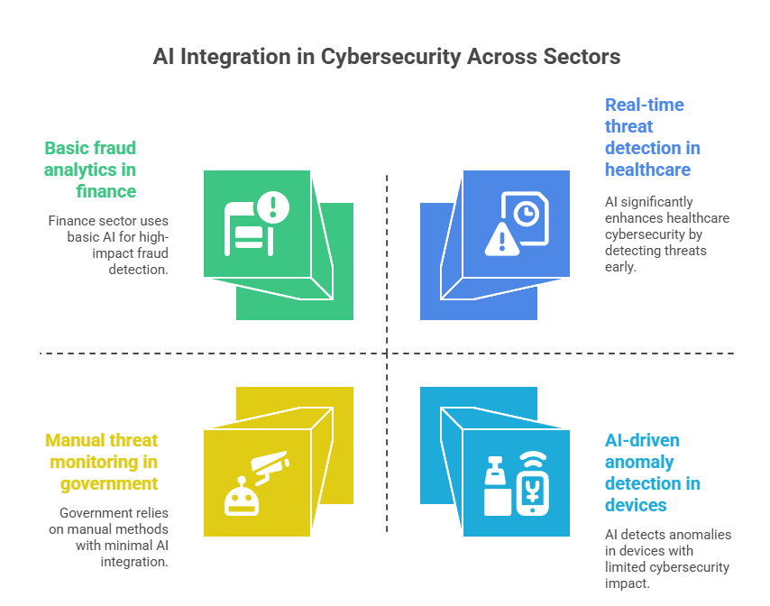 Healthcare, finance, and government are leading adopters. In healthcare, AI monitors patient data access and medical IoT traffic. Financial institutions use it for fraud scoring, anomaly detection, and transaction monitoring. Governments deploy AI for insider threat detection, large-scale threat intelligence correlation, and even national cyber defense automation. Across all sectors, the rise of regulatory compliance, attack sophistication, and operational scale is pushing organizations to embed AI deeply into their cybersecurity architecture.