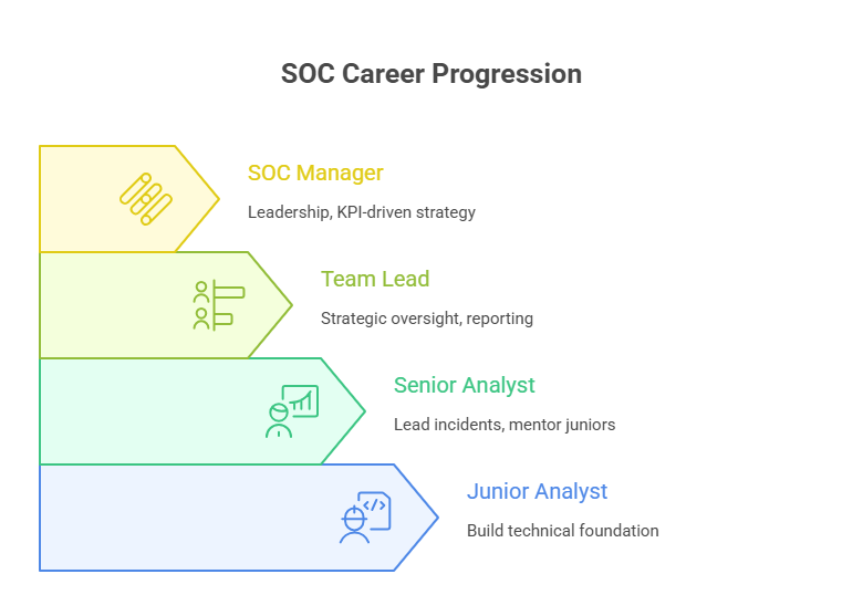 Whether you aim to climb internally or pursue opportunities elsewhere, the key is to combine technical excellence with leadership acumen. By mastering both, you position yourself not only for the SOC Manager role but also for future executive-level cybersecurity positions. The path is competitive, but for those who invest in both capability and influence, it offers one of the most rewarding trajectories in the cybersecurity field.