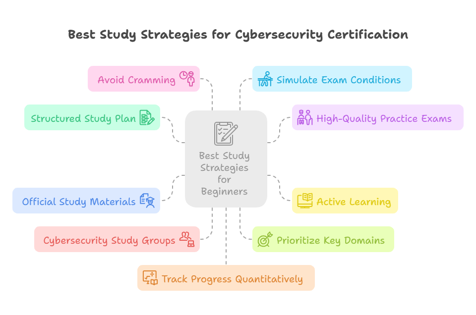 Most successful candidates follow 8–12 week plans for certifications like CompTIA Security+ and ISC2 CC, balancing theory and application in cycles.