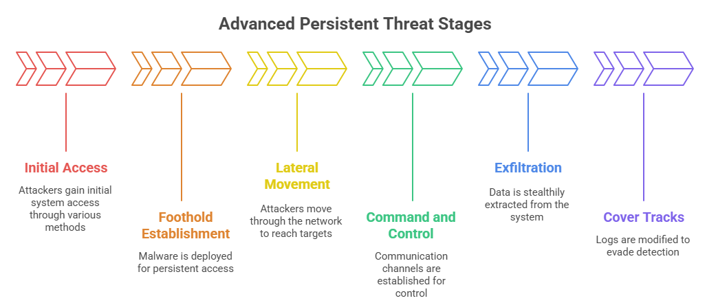 APTs typically unfold in a well-orchestrated sequence of stages, each serving a specific purpose in the attack lifecycle: