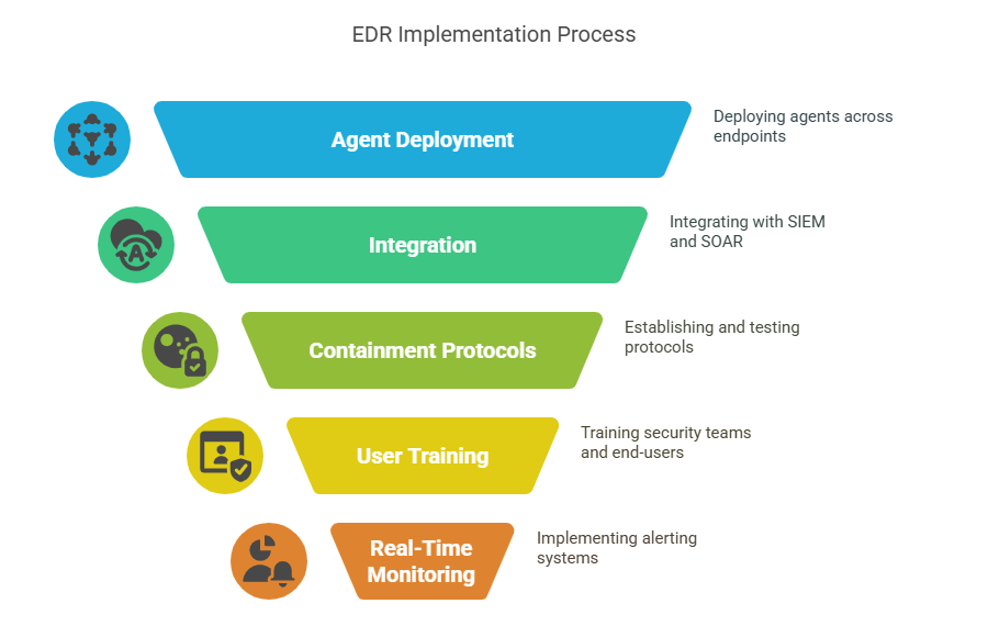 Successful EDR implementation hinges on a balanced combination of technology, processes, and human expertise. Organizations must approach deployment strategically, ensuring seamless integration and continuous monitoring to derive maximum value from their chosen EDR solution.